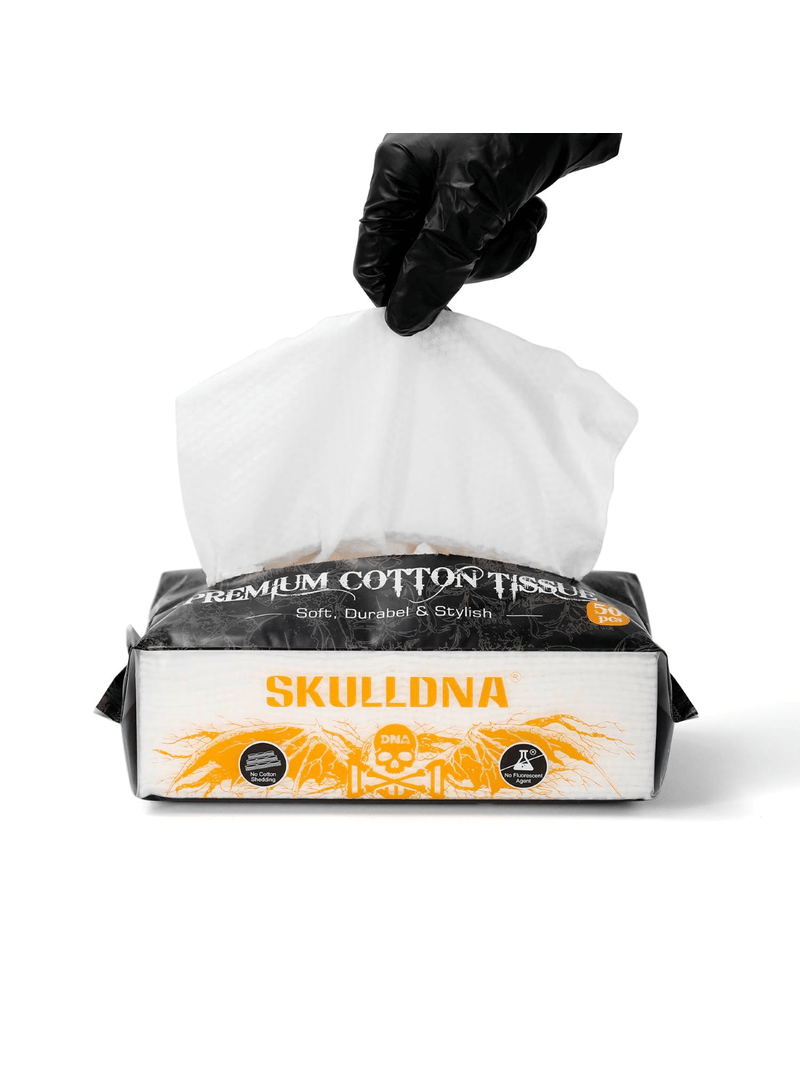 Com os Lenços Skulldna Premium, seu estúdio garante profissionalismo, higiene e conforto em cada tatuagem, cuidando tanto do cliente quanto do trabalho do tatuador.